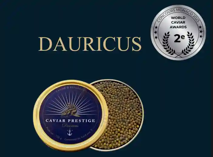Dauricus du Fleuve Amour vous offre une expérience gustative envoûtante. Ses grains lumineux, aux nuances dorées parsemées de reflets ambrés, captivent le regard par leur beauté éclatante. En bouche, notre caviar déploie des saveurs puissantes et chaleureuses, mêlant délicatement des notes de noisettes, d’amandes et de noix. Sa longueur en bouche et son goût raffiné séduiront les palais les plus exigeants.